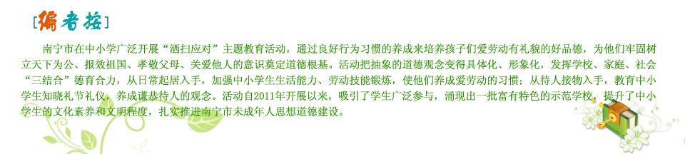 南寧市召開(kāi)“灑掃應(yīng)對(duì)”主題教育活動(dòng)經(jīng)驗(yàn)交流會(huì)